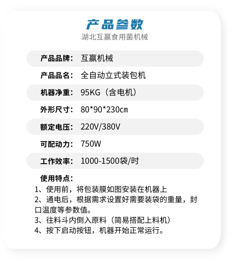 近年來代料香菇裝袋機(jī)的發(fā)展,越來越迅猛。其規(guī)模不斷擴(kuò)大,品種不斷增多,地域限制越來越少。是農(nóng)民增收的可靠保障,也是地方政府的經(jīng)濟(jì)支柱。自動(dòng)套袋食用菌裝袋機(jī)廣泛用在香菇、木耳、平菇、金針菇、茯苓、灰樹花、姬菇、秀珍菇等食用菌種植領(lǐng)域。是工廠、基地、合作社、家庭農(nóng)場理想的工廠化生產(chǎn)機(jī)械。生產(chǎn)規(guī)模的大小可根據(jù)資金、銷售量、經(jīng)營方式、技術(shù)力量、資源條件等綜合因素來確定,可用單機(jī),也可組合設(shè)計(jì)成半機(jī)械化...