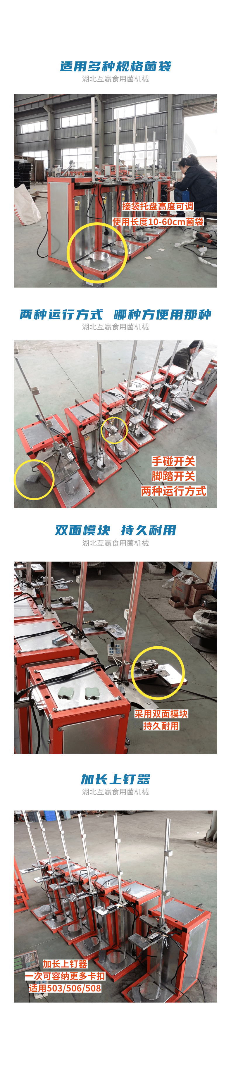 近年來代料香菇裝袋機的發(fā)展,越來越迅猛。其規(guī)模不斷擴大,品種不斷增多,地域限制越來越少。是農(nóng)民增收的可靠保障,也是地方政府的經(jīng)濟支柱。自動套袋食用菌裝袋機廣泛用在香菇、木耳、平菇、金針菇、茯苓、灰樹花、姬菇、秀珍菇等食用菌種植領(lǐng)域。是工廠、基地、合作社、家庭農(nóng)場理想的工廠化生產(chǎn)機械。生產(chǎn)規(guī)模的大小可根據(jù)資金、銷售量、經(jīng)營方式、技術(shù)力量、資源條件等綜合因素來確定,可用單機,也可組合設(shè)計成半機械化...